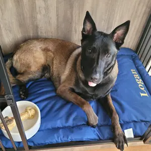 I have a Malinois/Belgian Shepherd puppy (22 months) who loves his fleece dog beds...and also will still bite, shred, and eat the stuffing. Although he does well with these while roaming the house, in his crate, I wanted something to lay on for comfort that I knew he wouldn't be able to destroy or ingest. It took him a bit to get used to it - the material is louder than the fleece! But he's enjoying it and will voluntarily lounge on it with the door open. He still will bite at it and try to play with it, but we are learning this is not a toy, and I feel better leaving him with something for comfort in his crate. Will be getting another one for his travel crate!