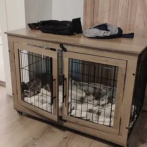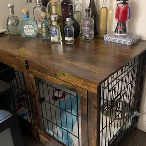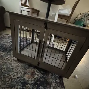 This dog crate is absolutely beautiful and compliments my living room décor perfectly. It was very easy to assemble, and I especially love that it comes with locking wheels for added convenience and stability.