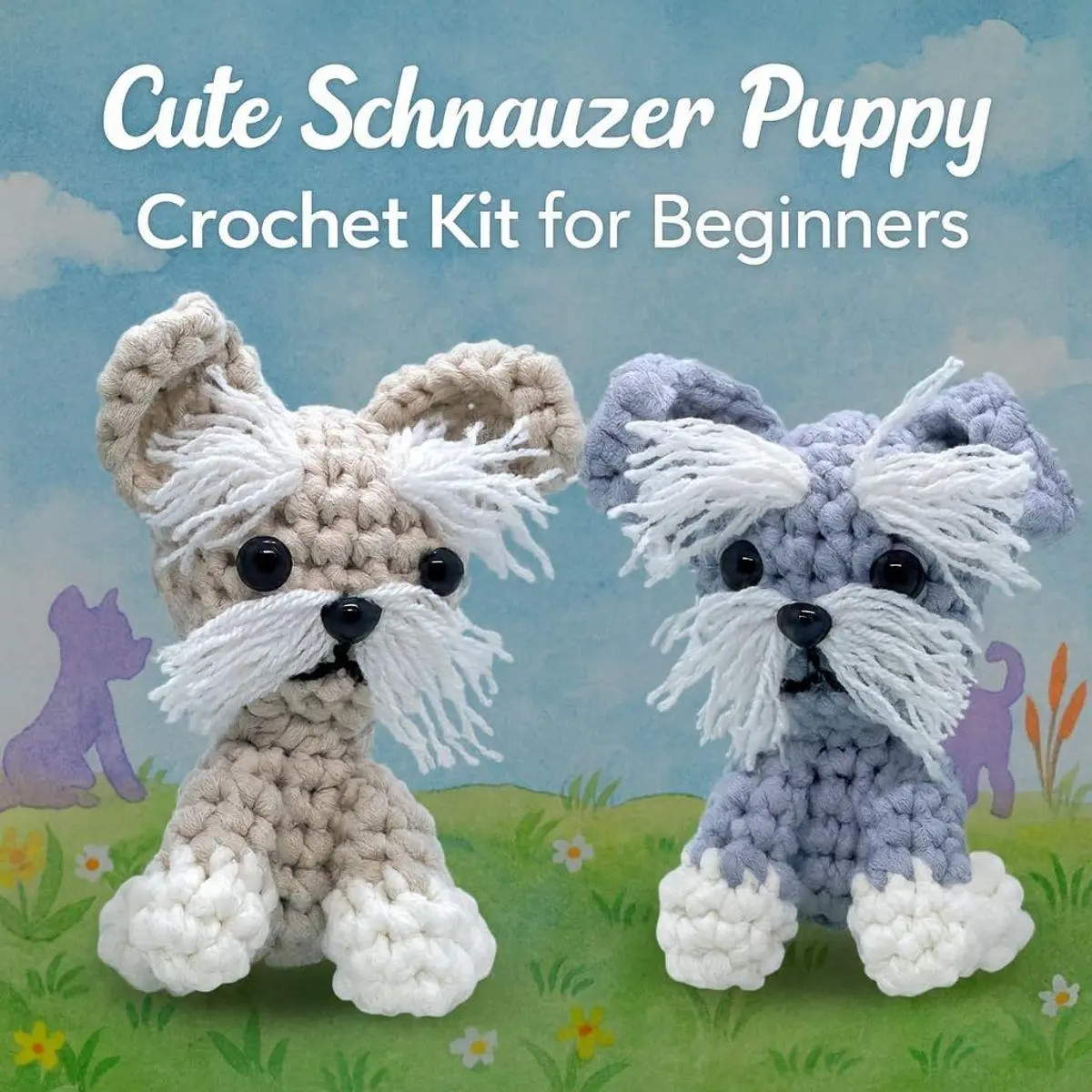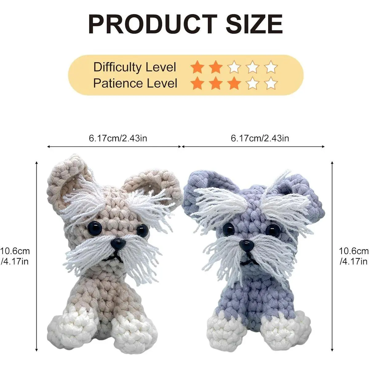 PICK UP A NEW SKILL - This cute Schnauzer Puppy Crochet Set is part of our DIY Animal Crochet Kit collection, designed for those who want to swap screen time for craft time. Learn basics crochet stitches, crocheting your own couple Schnauzer puppy doll, and build up to intermediate skills with ease.