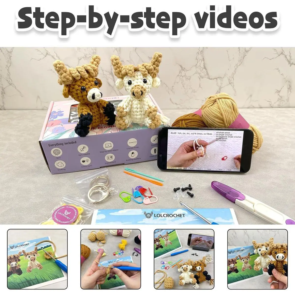 EASY CROCHET KITS FOR BEGINNERS – This beginner-friendly crochet kit includes hours step-by-step video tutorials and a printed instruction manual, making it easy to learn basic crocheting stitches and complete your first stuffed kawaii animal project from start to finish—even with zero experience.