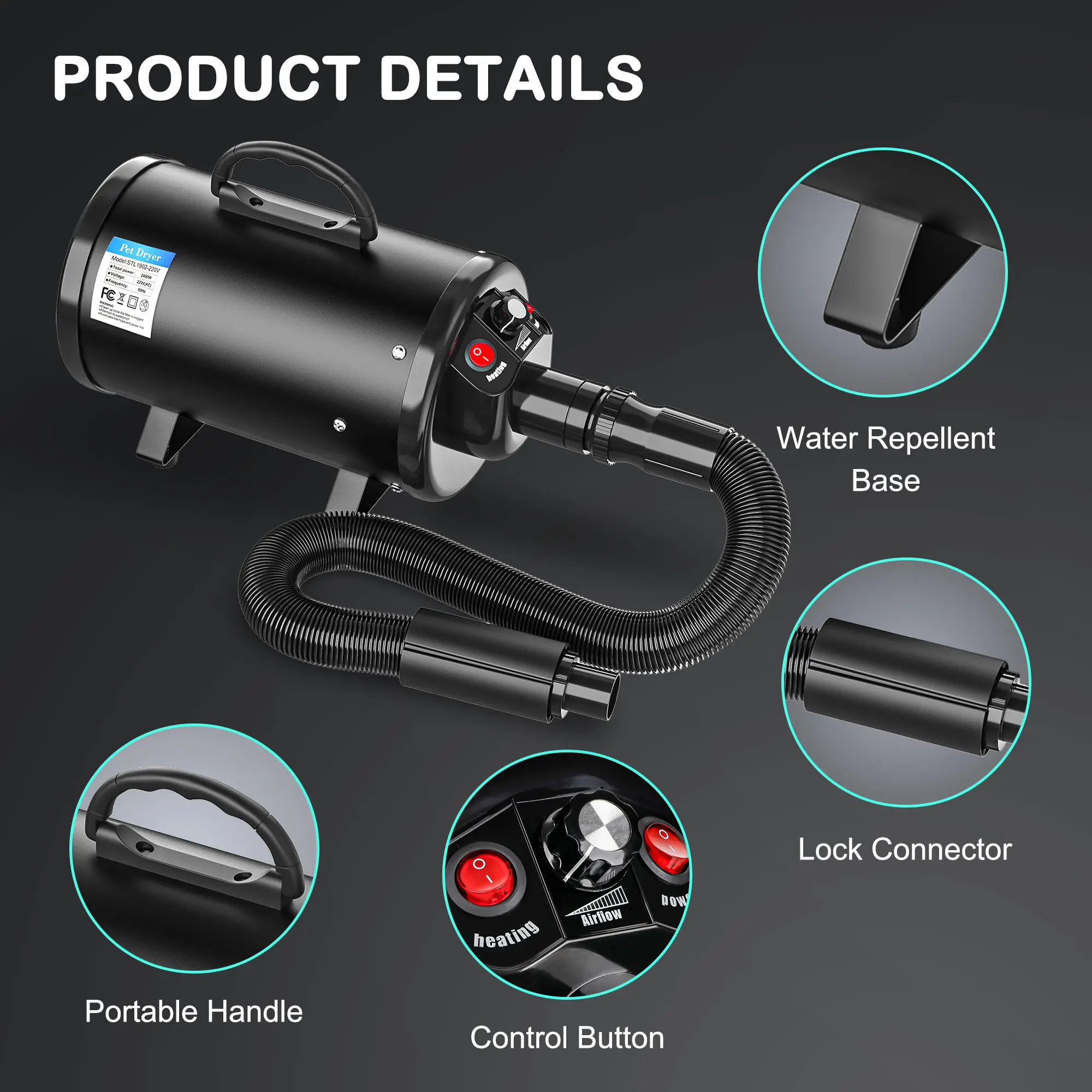 ·Choose from two airflow speeds (25M/S - 50M/S) and two temperature settings (86°F - 158°F) to customize drying for your pet's comfort.