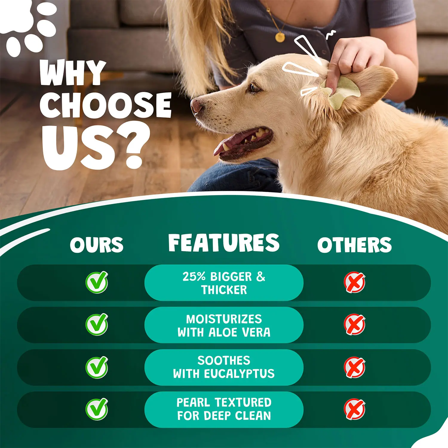 âą Effective Cleaning: Specifically designed to remove dirt, wax, and debris, these wipes soothe irritation and deodorize ears. Infused with aloe vera and eucalyptus, they leave your dogâs ears fresh and clean. đż