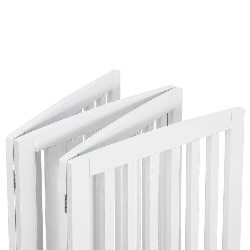 Built from durable MDF with a white finish, this gate ensures that your dog, puppy, or other pets remain safely confined while you are away. Its robust design provides peace of mind.