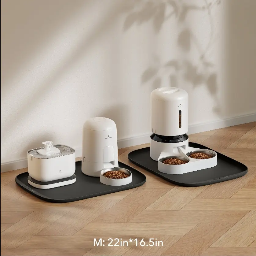 ·A Perfect Fit For Every Pet And Bowl: With a range of sizes and colors to choose from, the Cove food mat is a versatile addition to any pet feeding station. The small mat measures 17.7 × 12 in, while the medium option measures 22 × 16.5 in. Not only do they fit perfectly with the PETLIBRO range of smart feeders and fountains, but they're compatible with various bowls and accessories too.
