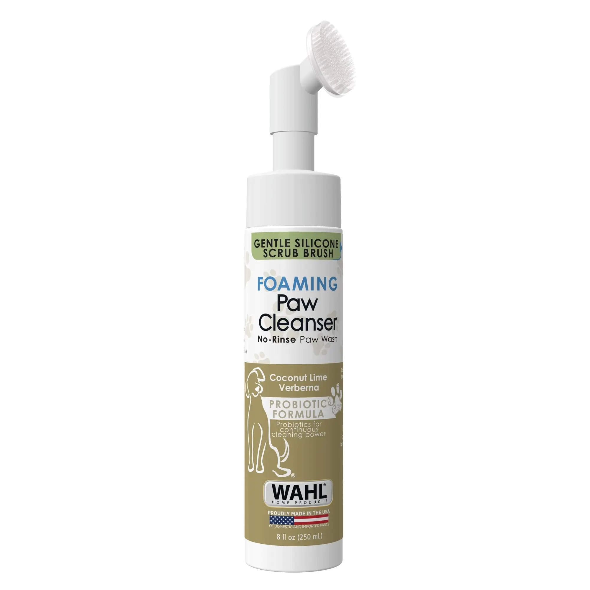 • Wahl Gentle Foaming Paw Cleaner (8 oz) – No-rinse probiotic foam with soft silicone scrubber to remove dirt from paws