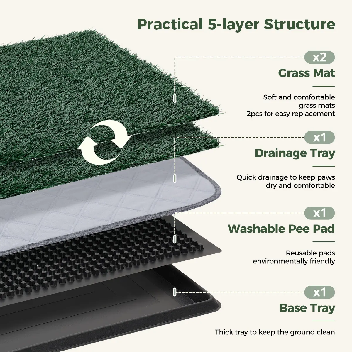 ·2PCS REPLACEMENT ARTIFICIAL TURF: Soft, synthetic grass mimics real turf, providing a comfortable potty experience indoors. 🌿