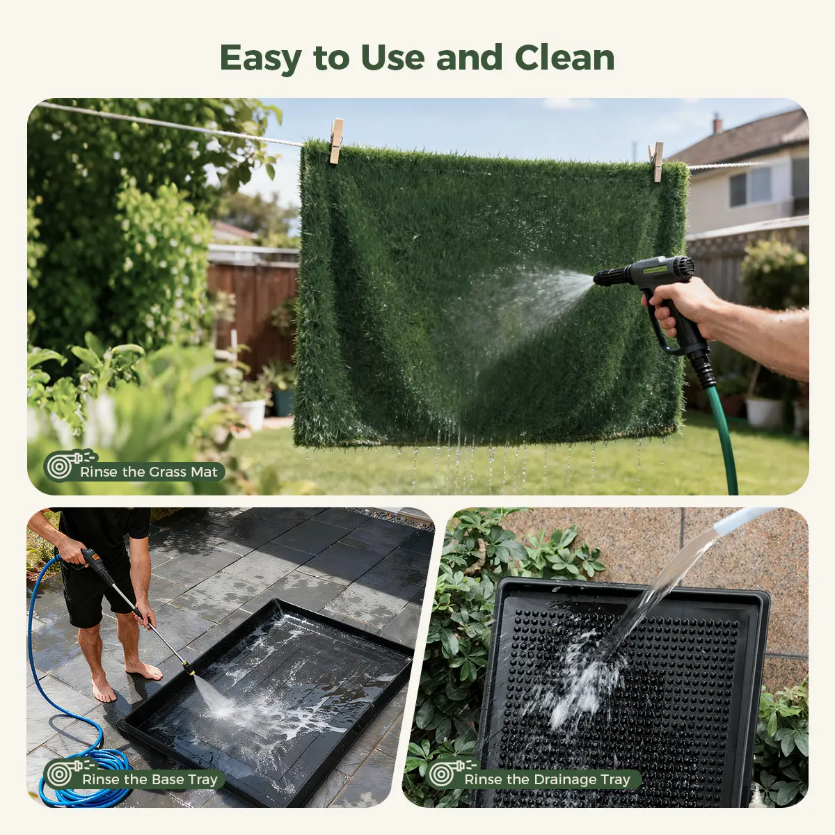 ·NO ASSEMBLY & EASY CLEAN-UP: Ready to use out of the box. Turf pads can be cleaned with soap water, and the tray with a hose. 🚰