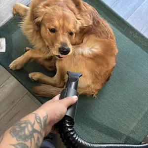 Absolutely love this dog dryer. We have a Goldendoodle and when we need to gi e her a bath between grooming appointments this dryer cuts the drying time for her in half. I think all dog mamas need this at home.