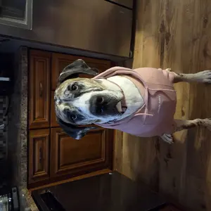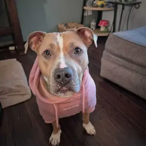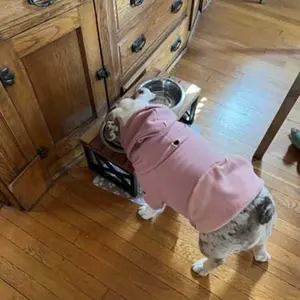 This pink cozy hoodie was so cute! Tala is a 83lb golden retriever we got the size 4XL great fit!!!