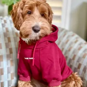 The hoodie is so soft, well-made, and cozy! I got two hoodies for my dogs. They look beautiful in them, and this burgundy color is more like a raspberry color (which looks great with the teal hoodie that her brother wears).