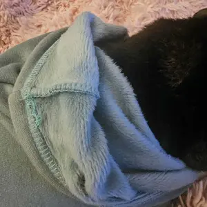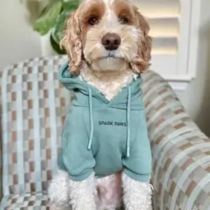 Sage green Spark Paws hoodie—soft, plush, and perfect for my senior girl Bella Mae’s cozy naps. She’s living her best retired life in style.