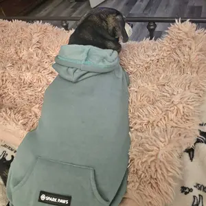 I love this hoodie !! I’m 28lbs and this still has a lil room for me to indulge in snacks and grow into it!!! I do like my hoodies a lil loose!! Thanks so much spark paws follow me and my sis on ig@boxerfrenchiesisters to see more of my outfits 💕