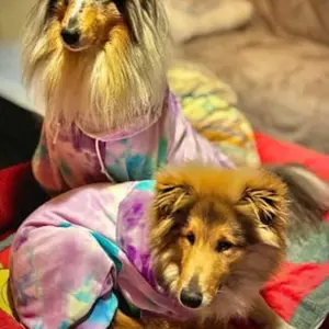 Ivy loves her sweatshirt and moped around after I took it off. Thank goodness I bought a pair of pj's to put on her. They are just as great! Ivy is an average sized female Pittie and weighs 54 pounds. This is one of the only places where I can find clothing that fits comfortably around her chest and neck. Pittie's have very little hair on their belly's and under arms, so the lay flat seams and soft inside are a plus in preventing chafe and promoting comfortability!