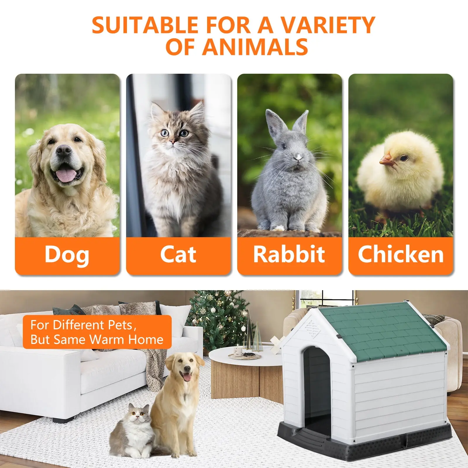 This dog house is crafted from tough and durable PP material, ensuring long-lasting use and reliability for both indoor and outdoor environments.