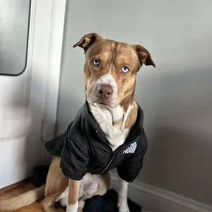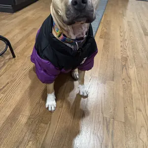 Hey! This Shiloh and he loves “The Dog Fans” puffer jacket. Shiloh is about 14 pounds 11 months old we got him a size small, and it fits him perfectly. To make sure this was a perfect fit to his personal body the vendor reached out to me and asked for Shiloh measurements, along with a video to assure the correct way to measure your pup. I truly appericate the communication , and the fast delivery. Thank You! Now Shiloh and I have matching puffers lol! Think we need another one.