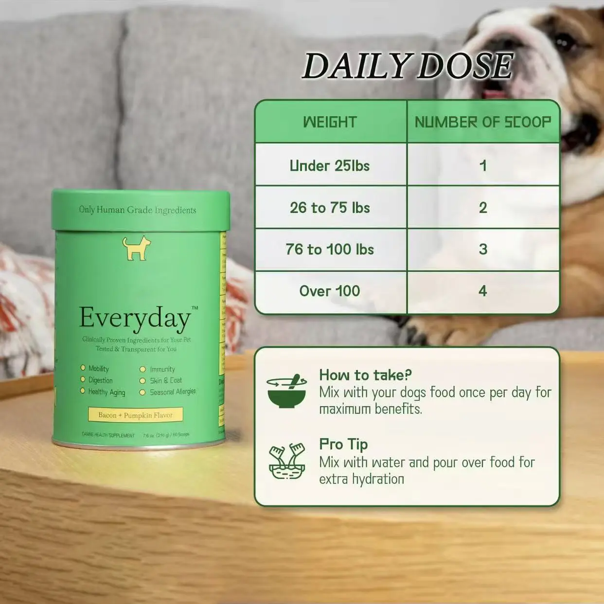 ·Daily Use: Mix with your dog’s food.