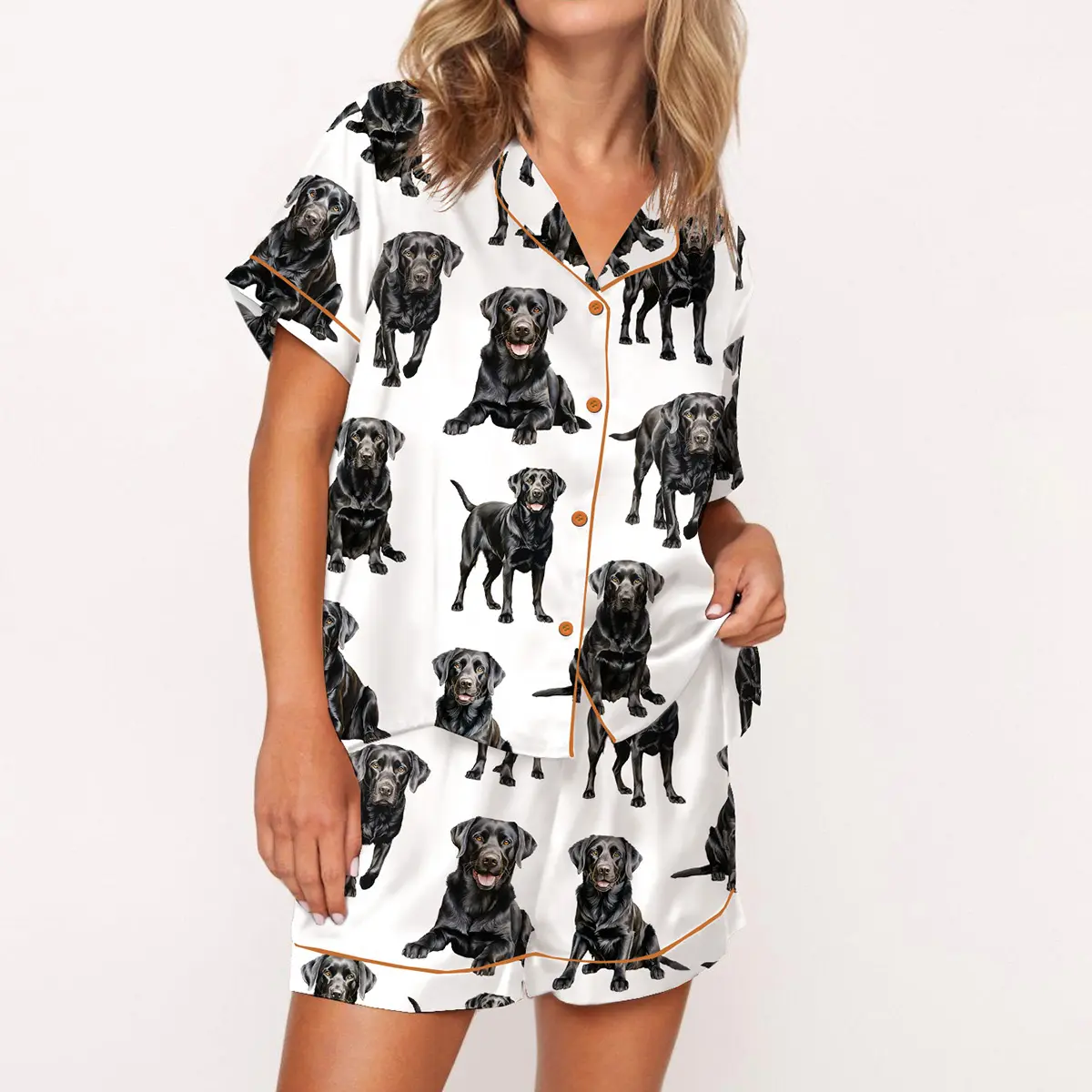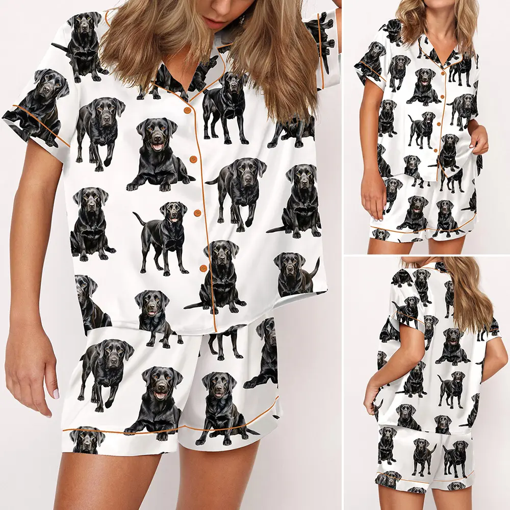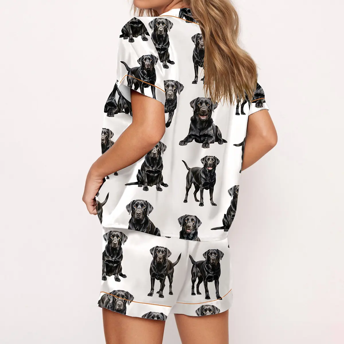 Black Labrador Doggy Pajama Set For Women Print Comfy Satin Sleepwear & Loungewear Pjs Printing Silky Short Sleeve Top & Shorts - SHESHOWBlack Labrador Doggy Pajama Set For Women Print Comfy Satin Sleepwear & Loungewear Pjs Printing Silky Short Sleeve Top & Shorts - SHESHOWBlack Labrador Doggy Pajama Set For Women Print Comfy Satin Sleepwear & Loungewear Pjs Printing Silky Short Sleeve Top & Shorts - SHESHOW