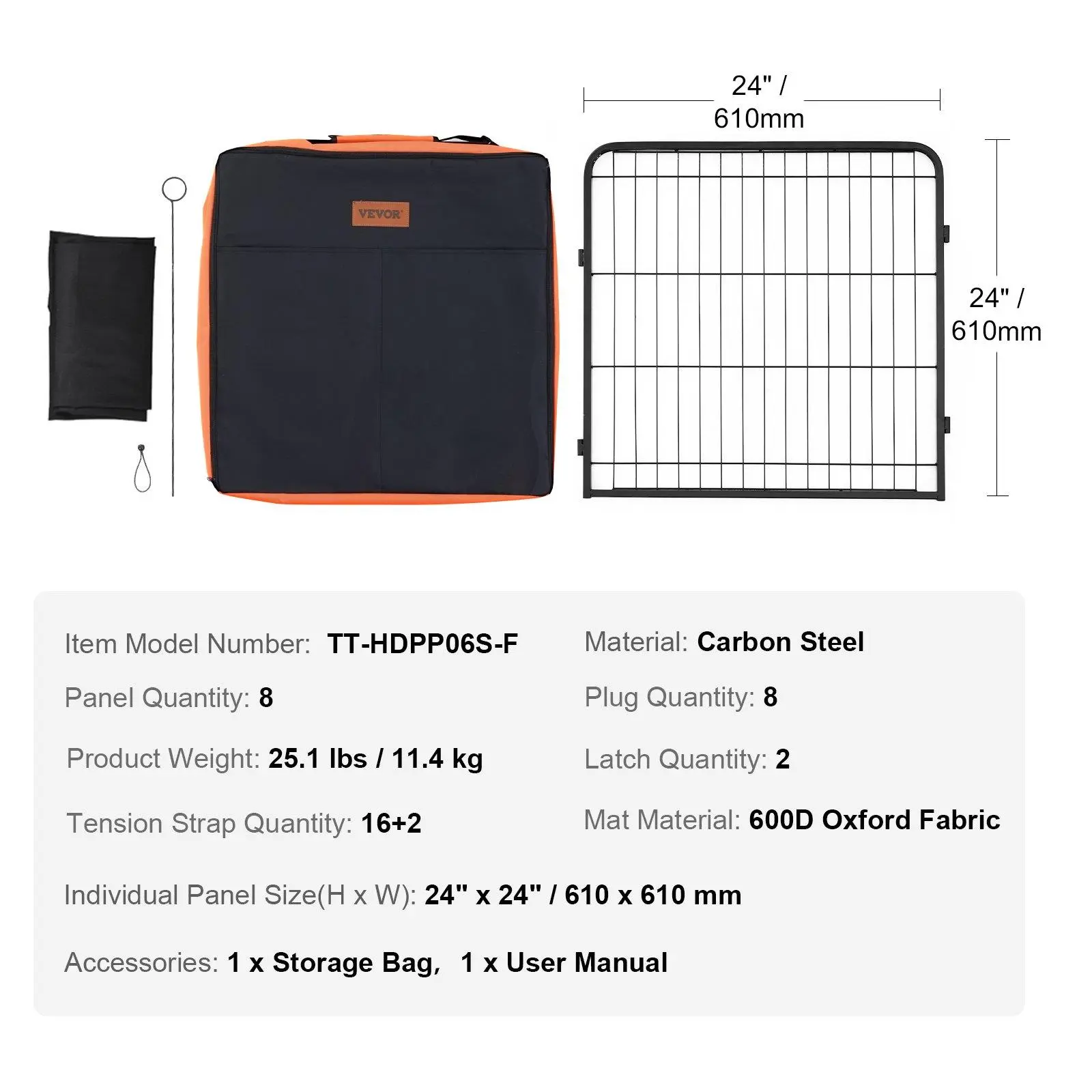 ·Versatile Use: This dog playpen is composed of 8 panels that can be arranged into a 24" side-length octagon, providing a spacious area for pets. The door opens all the way to the top, allowing easy access for the owner.