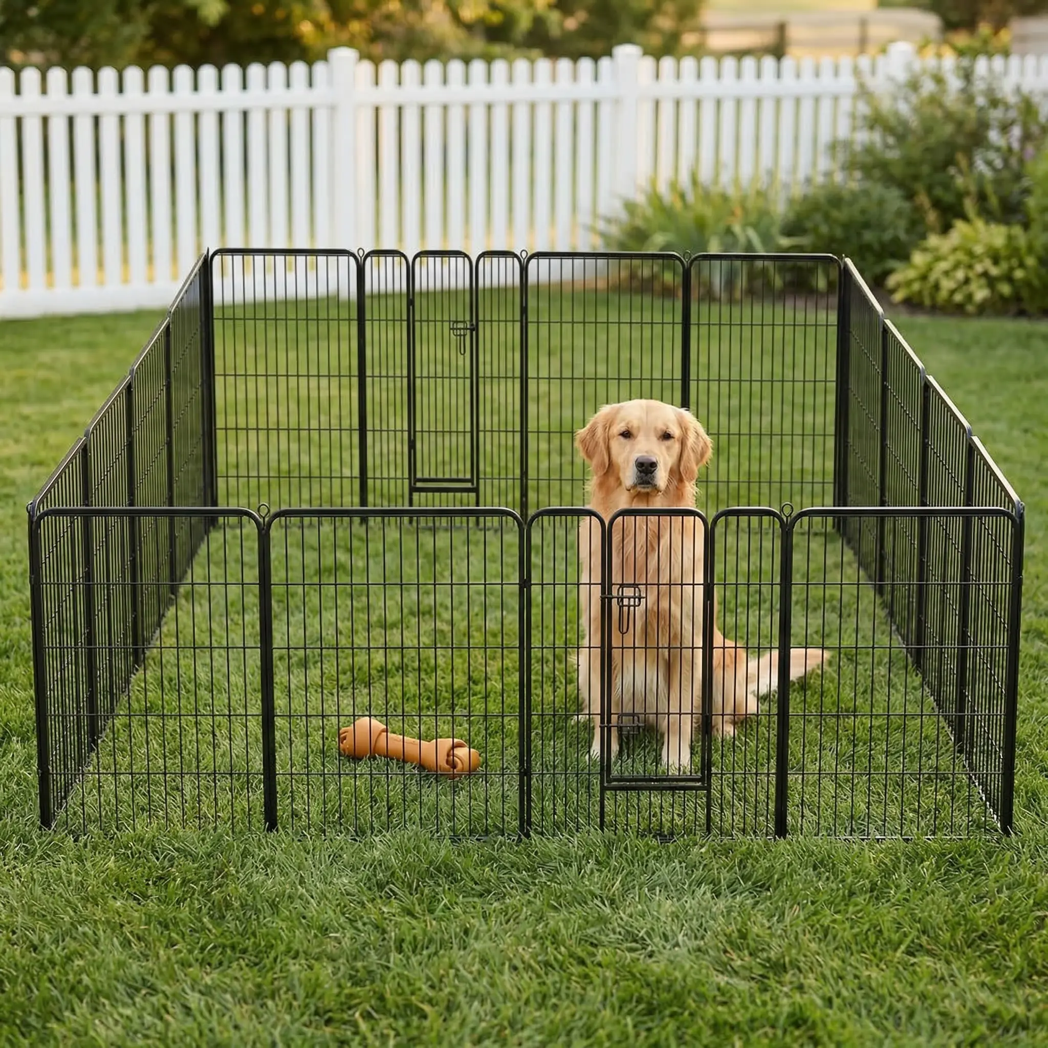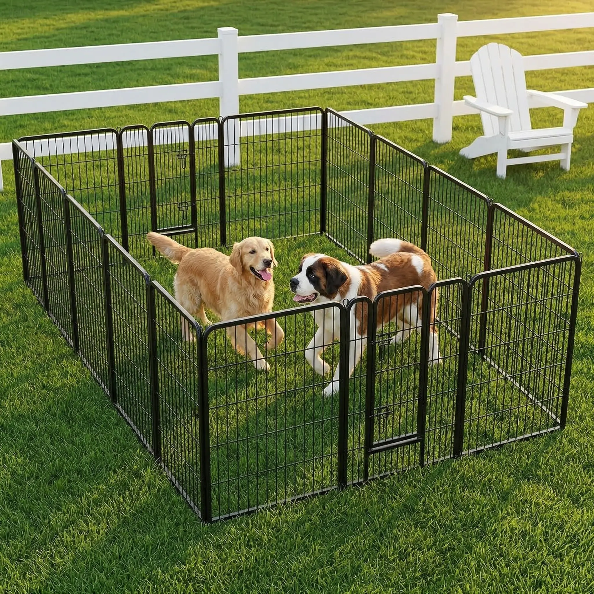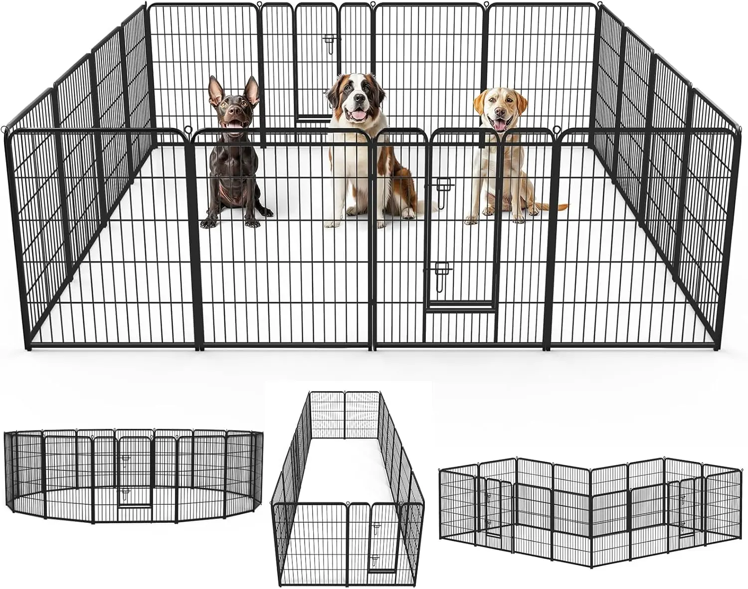 ·Tailored Options & Perfect Fit: Dog playpen with door are available in 8-panel and 16-panel versions and in 3 heights: 24", 32" and 40". Our diverse selection ensures a perfect fit for dogs of all sizes and accommodates kittens, cats, rabbits, and more, providing a reliable, comfortable space for all pets.