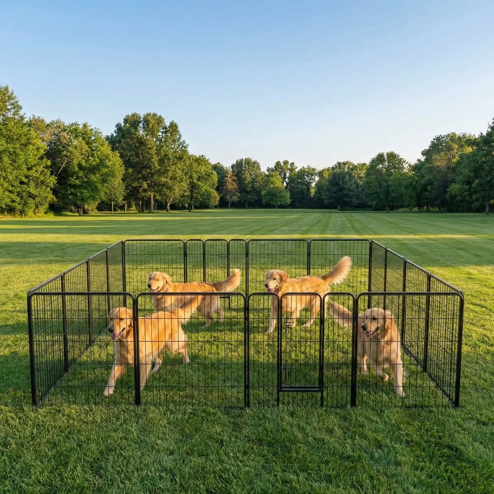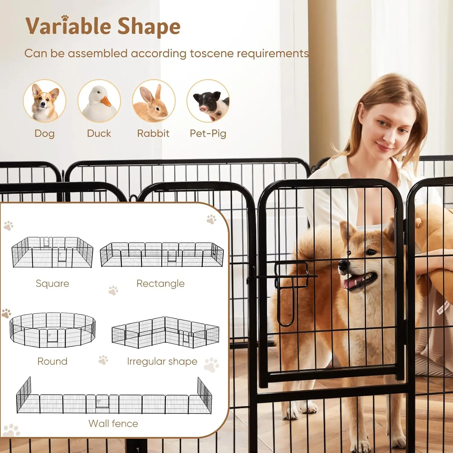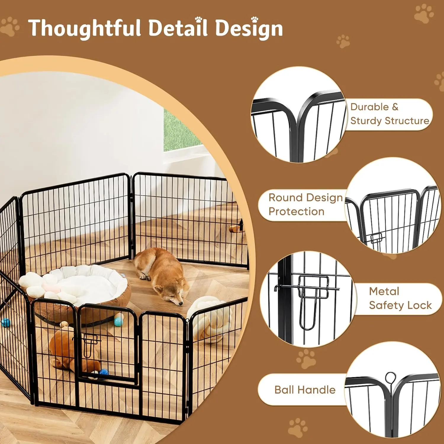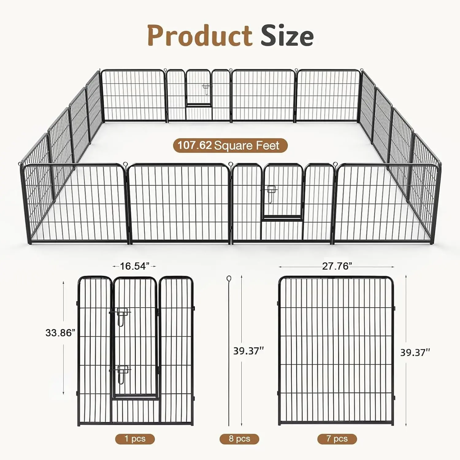 ·Tailored Options & Perfect Fit: Dog playpen with door are available in 8-panel and 16-panel versions and in 3 heights: 24", 32" and 40". Our diverse selection ensures a perfect fit for dogs of all sizes and accommodates kittens, cats, rabbits, and more, providing a reliable, comfortable space for all pets.