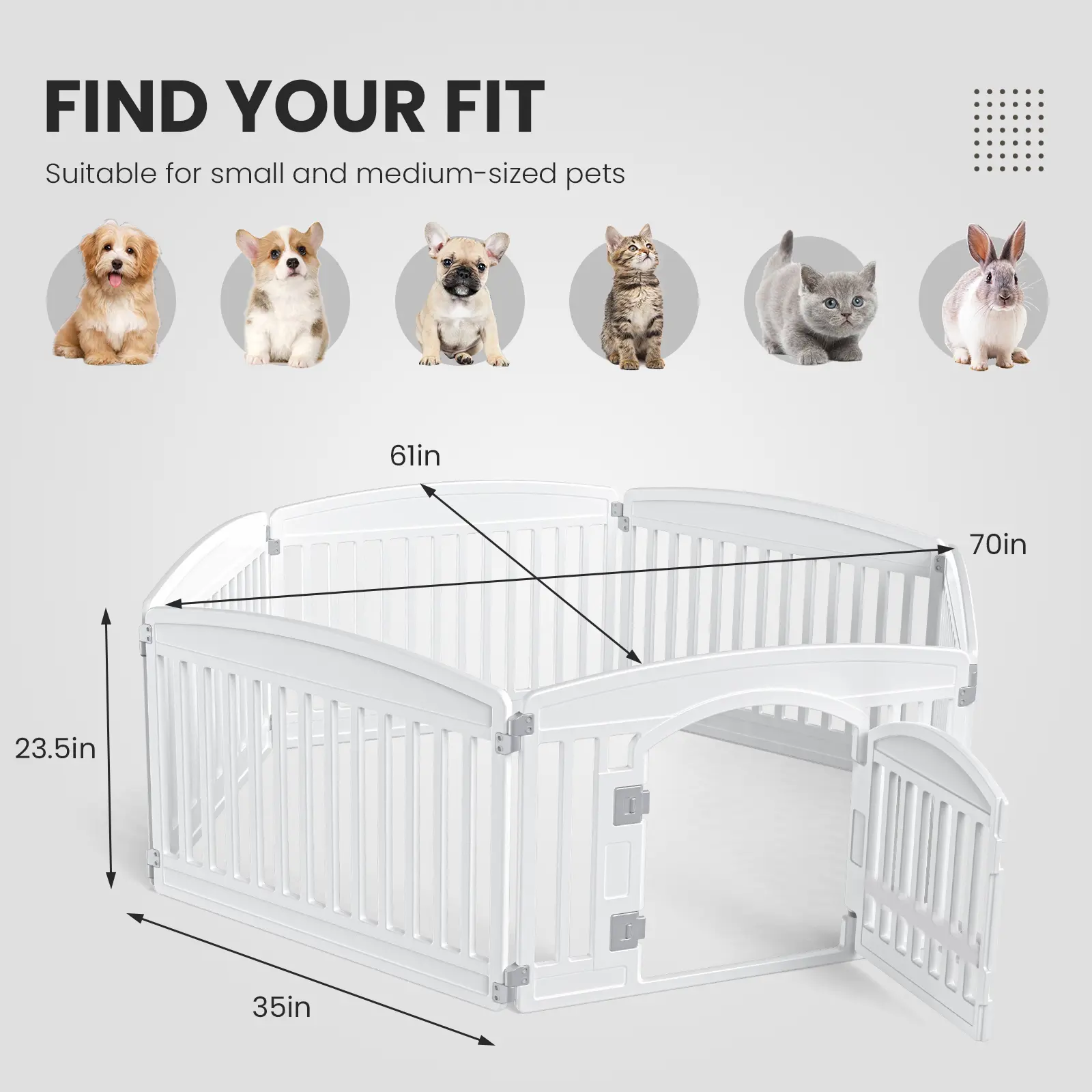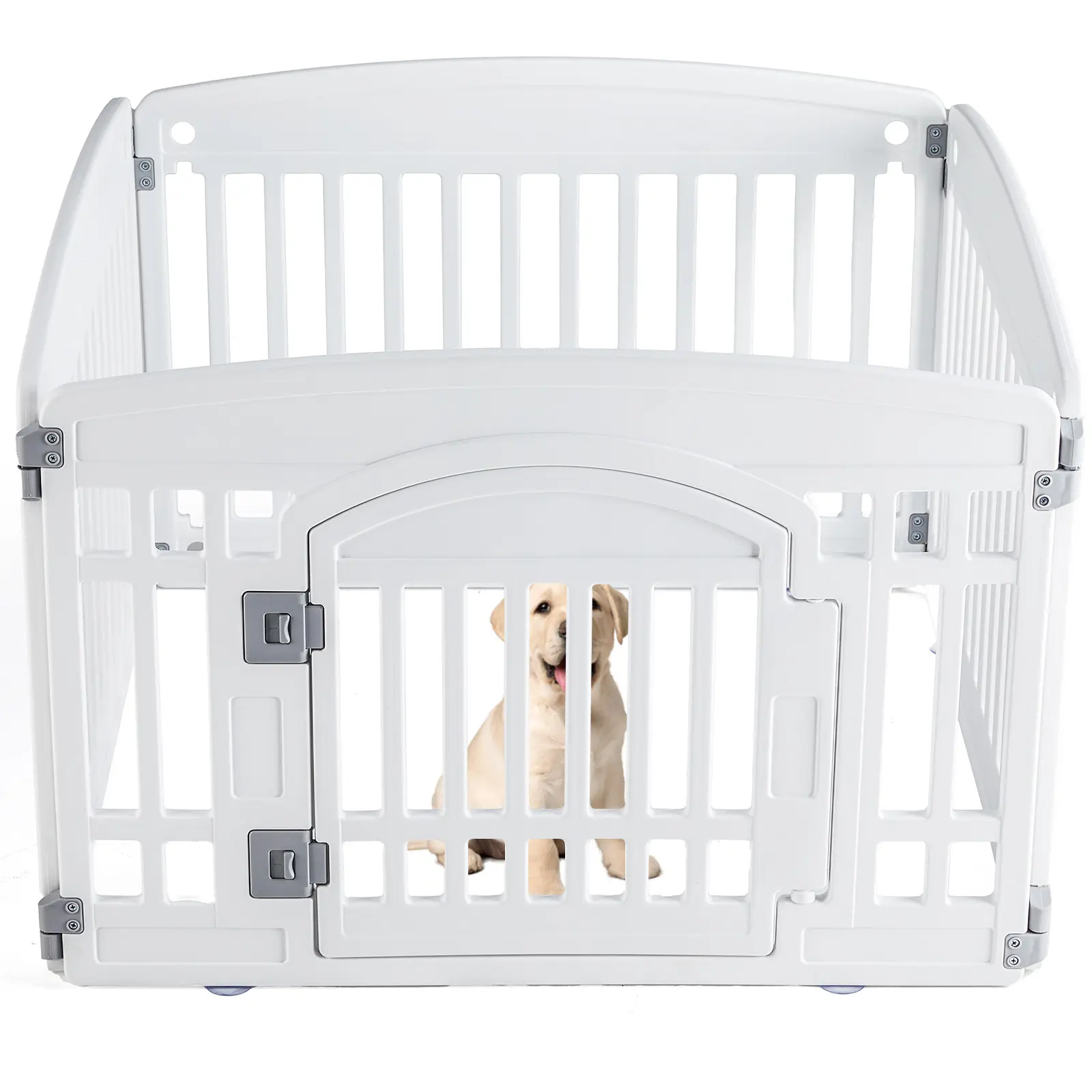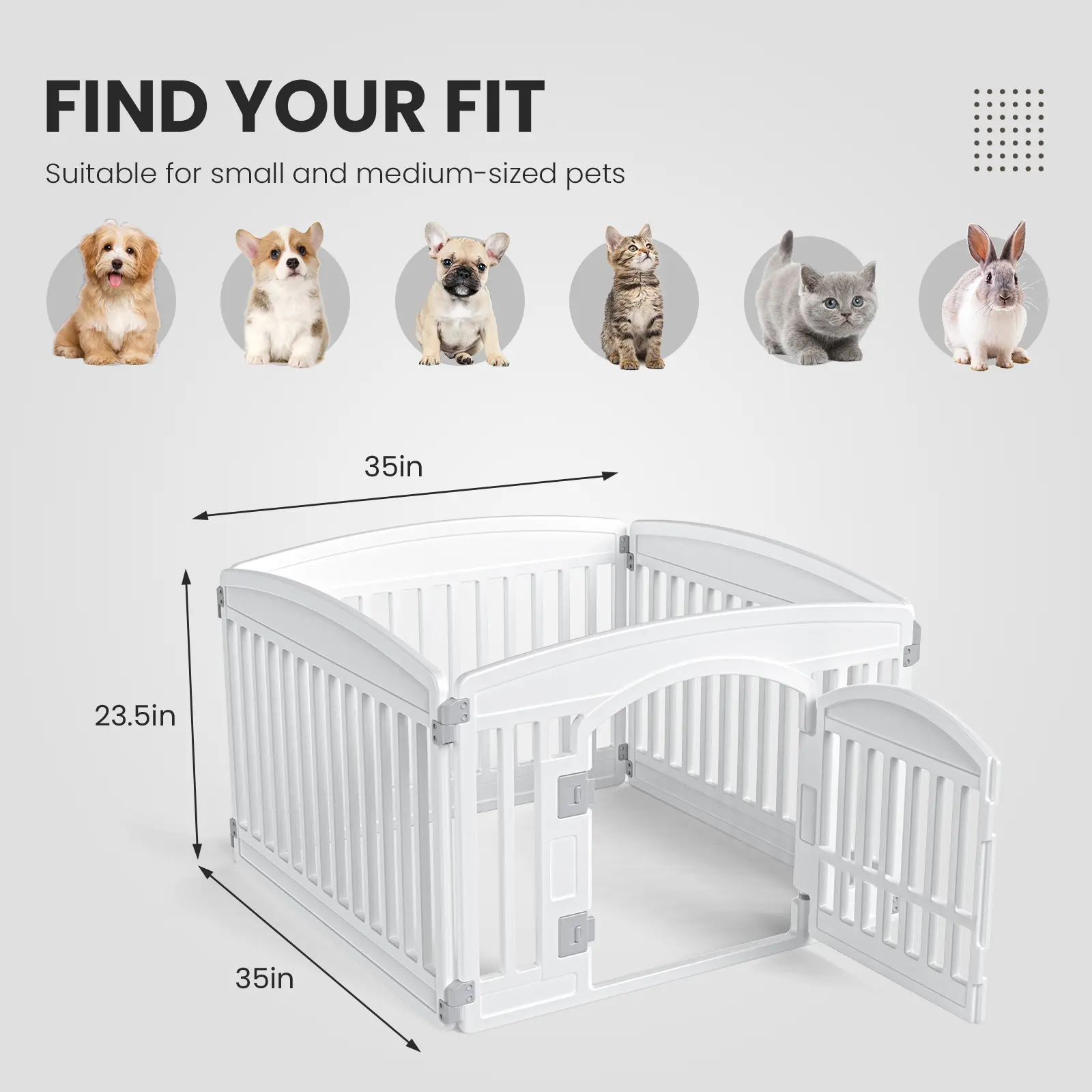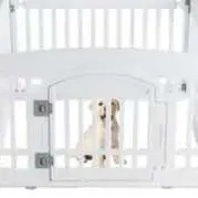 Specifically designed for small to medium breeds, this fence offers ample room for your dog to move, play, and stretch out. It’s the dedicated safe zone they need for solo playtime, training, or a quiet nap away from household bustle.