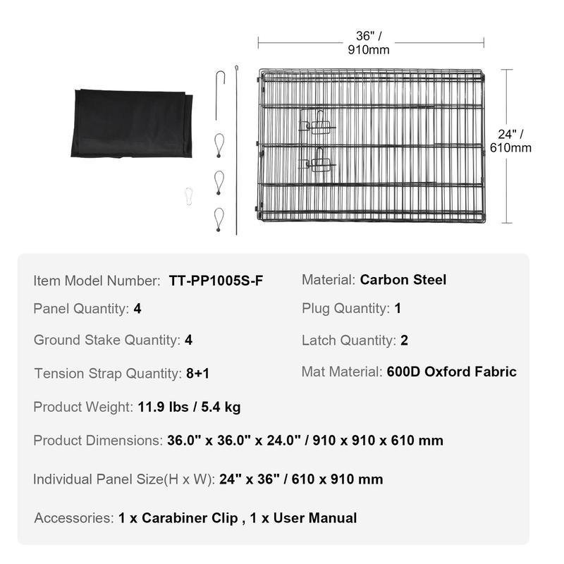 • Versatile Use: This dog playpen is composed of 4 panels that form a spacious 36" x 36" square. The door opens all the way to the top, allowing easy access for the owner.