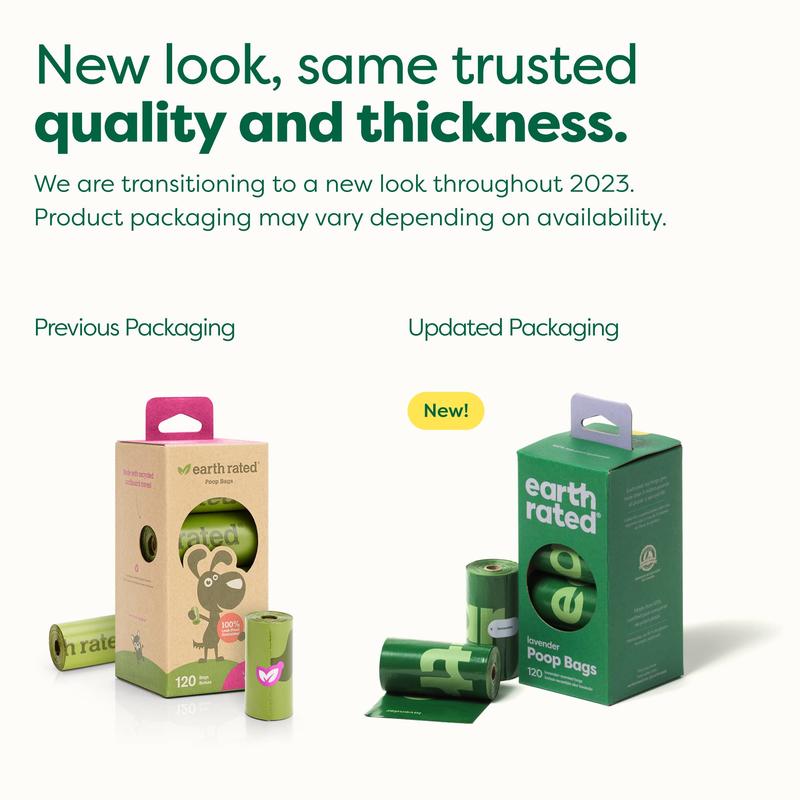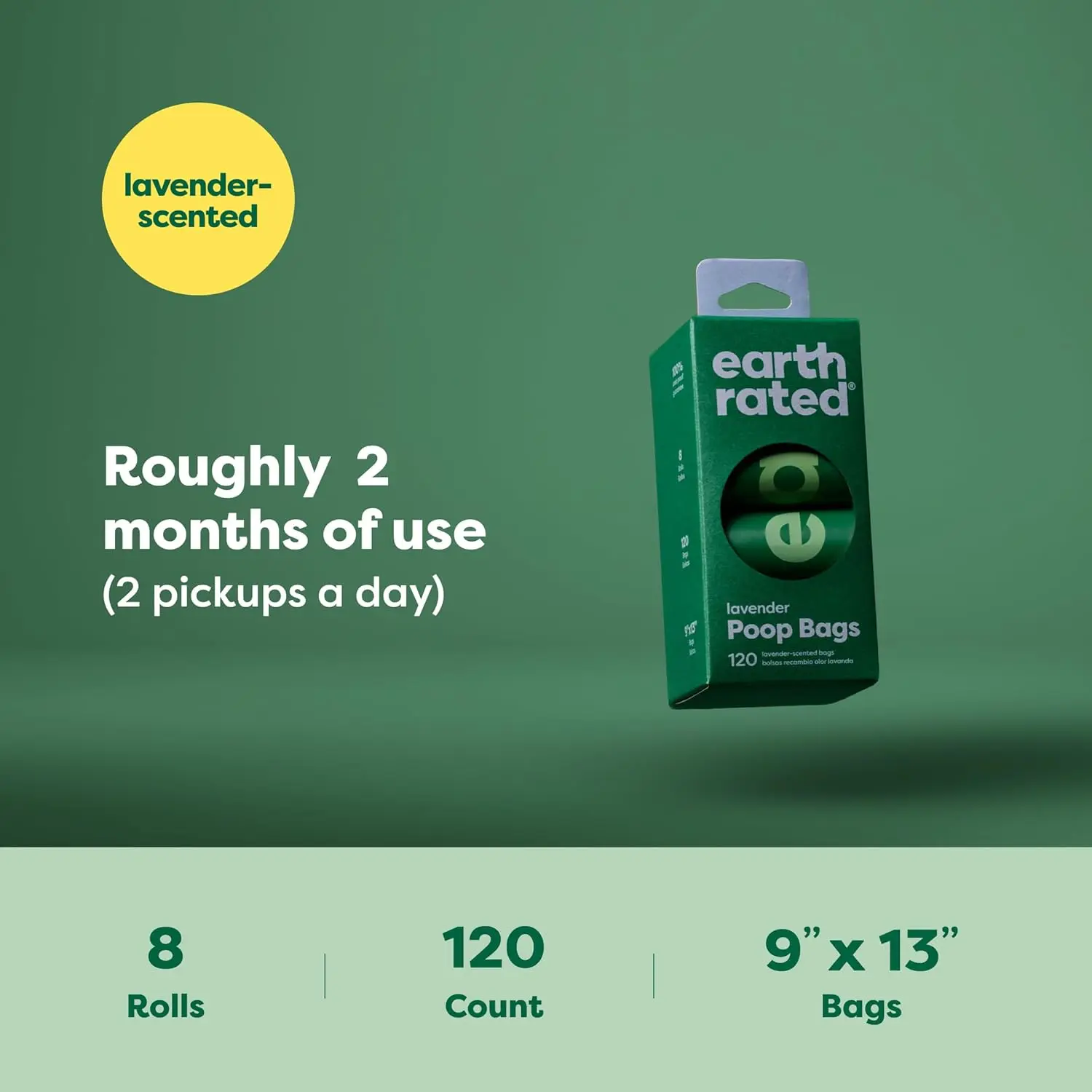 Earth Rated Lavender Scented Dog Poop Bags are essential for every dog owner. These durable, portable bags pair perfectly with the Earth Rated Poop Bag Dispenser. Keep your hands clean while walking your dog. Each bag measures 13" L x 9" W. These extra-long, extra-strong bags are 100% leak-proof, ensuring your hands stay clean.