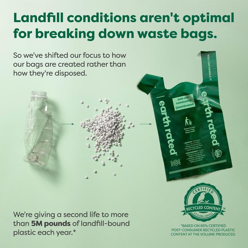 📦 Stash a Roll: Stash a roll in your pocket, treat pouch, backpack, car, or stroller. The "3 Bags Left" sticker ensures you know when you're low. Made with 65% certified post-consumer recycled plastic, saving over 5 million pounds of landfill-bound plastic annually.