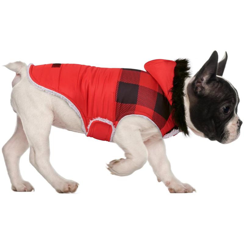 Fleece-lined puffer jacket keeps your dog cozy in cold weather. The faux fur trim hood shields ears and head from wind, rain, and snow. Perfect for small to XXL dogs. 🌨️