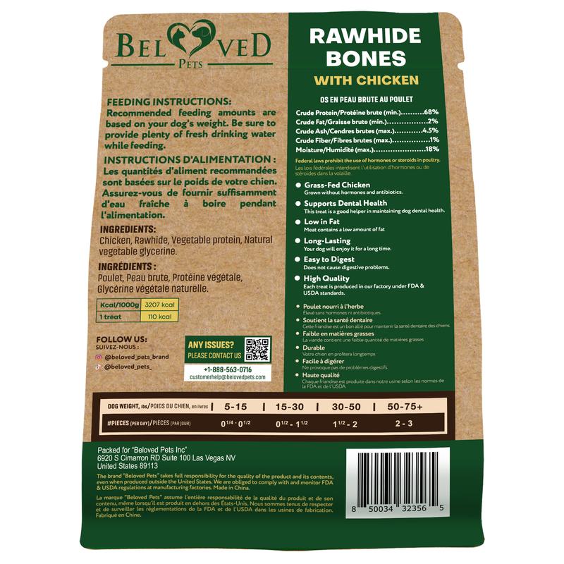 Nutrition Facts : Ingredients: Rawhide, chicken meat, Calories per treat: 50-70 kcal, Protein: 8-10g, Fat: 4-5g, Fiber: 1-2g, Moisture: 15-20%, No artificial colors, flavors, or preservatives, Packaging: Soft, resealable pack for freshness and convenience
