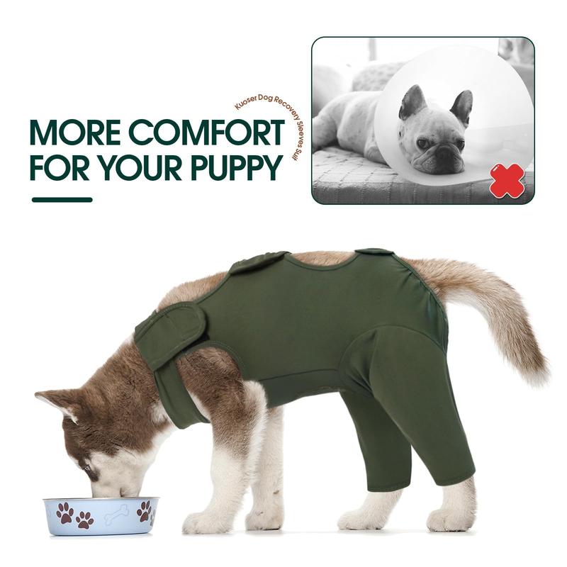 Cone Alternative: Say goodbye to the Cone of Shame! The Kuoser Dog Onesie is a great alternative that protects wounds on your pet's abdomen and thighs, enhances mobility, and prevents your pet from licking wounds