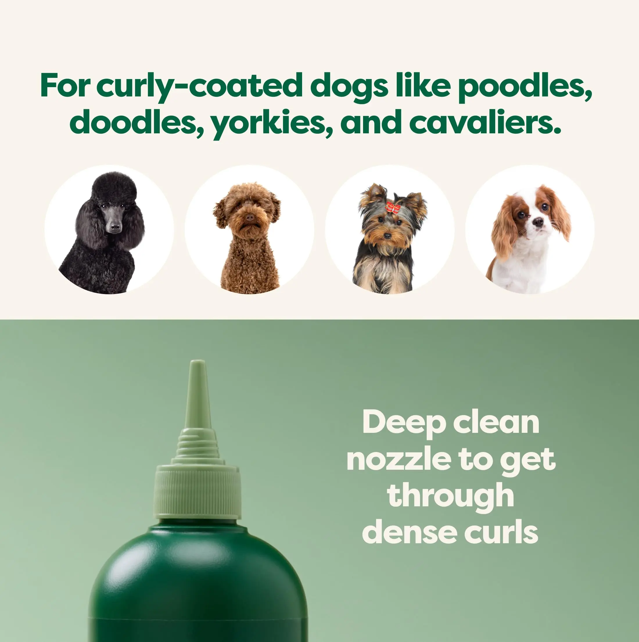 ·Specially Formulated: This shampoo is designed for curly-coated dogs, tackling tangles and restoring curls. Ideal for breeds like poodles, doodles, yorkies, and cavaliers. 🌿