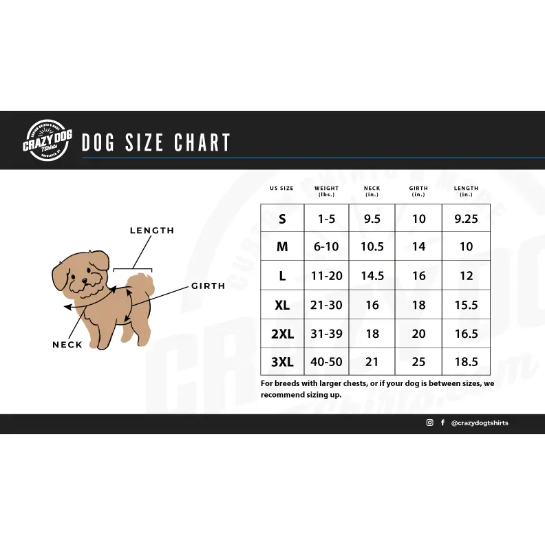 Make your furry best friend’s day with a Crazy Dog T shirt. Our funny high-quality animal tees fit most dogs and puppies. Each tee is screen printed with state of the art ink and equipment so you can trust your pup gets the best quality just like you! Pet Parents celebrate with your new puppy with our holiday themed attire, and make any gotcha day, birthday photo of your four-legged friend pop!