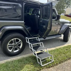 • Sturdy and Safe: Built with a sturdy aluminum alloy frame, the folding pet steps can support pets up to 250 lbs. They remain stable and do not wobble. Foam handles and safety tether clips enhance safety, preventing pets from slipping while climbing.