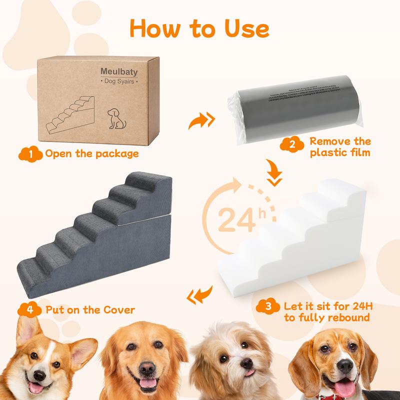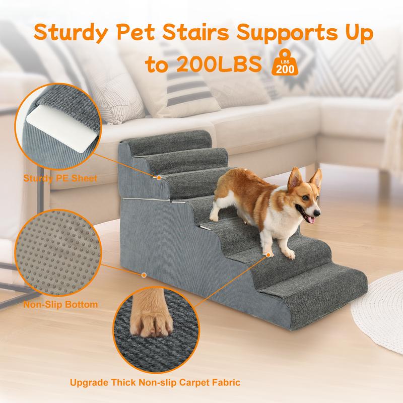·【Customizable Height for Every Adventure】: Our dog stairs with 6-step and 7-step designs ,which is uniquely crafted to adapt to your pet's needs. The modular design allows for easy assembly—simply zip or unzip the sides to create a 4+2 or 4+3 configuration. Whether your pet needs a gentle incline or a higher climb, these stairs grow with them, offering comfort and confidence every step of the way
