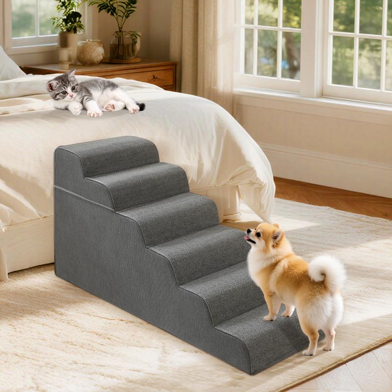 ·【Premium Carpet for Paws and Play】: Our dog ramp is covered by 370g carpet fabric on each slope,which is not only durable but also adds extra traction for your pet’s paws, preventing slips during their climb. Paired with high-density 25D memory foam that maintains its shape with a 98%+ rebound rate, these steps are a luxurious haven for your furry friend