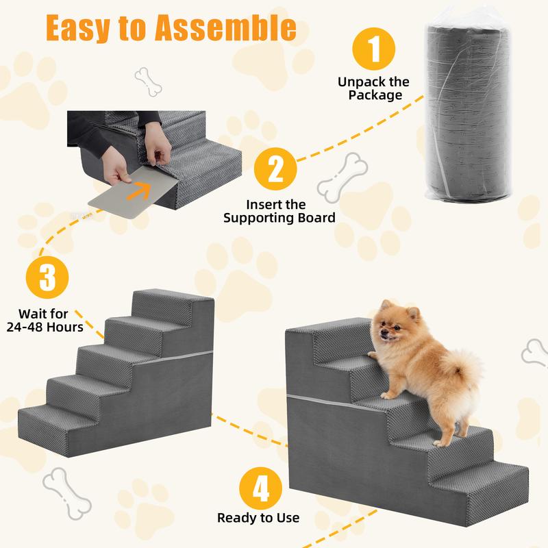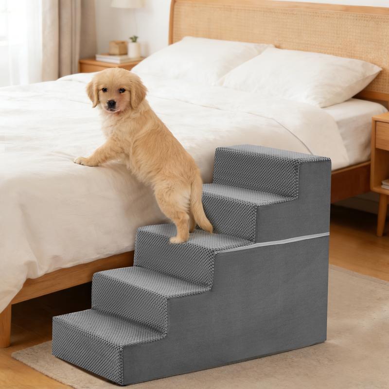 ·Stable Non-Slip Support: Built with high-density foam for strong, reliable support, the dog steps for bed stay firm under your pet's weight, while the non-slip bottom keeps them securely in place on indoor floors