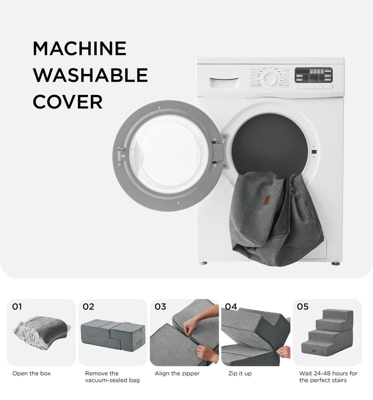 This is the real deal! 5 steps reach 22.5 height. Washable/heavy fabric, durable and good quality. Perfect for senior dogs and all dogs in general.