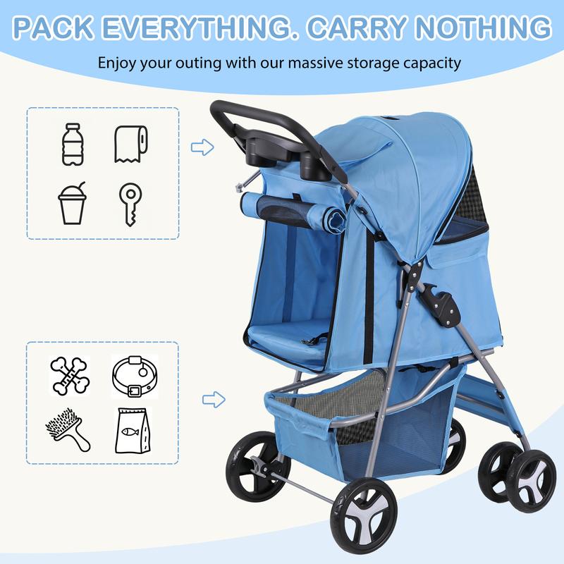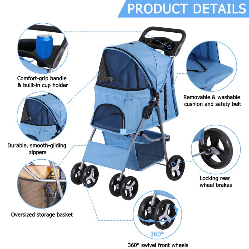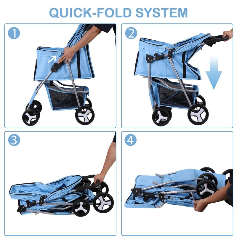[Great for Travel] Our cat stroller has no tools required. Once you’re done, the pet stroller quickly collapses for convenient storage. Our dog stroller's collapsible design makes it ideal for travel and camping.