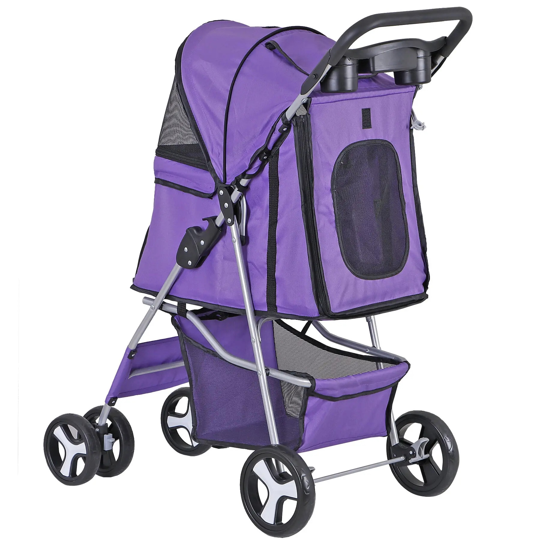 Multi-functional accessories such as two cup holders, a center tray, and a spacious basket underneath offer convenient placement for extra items while you stroll with your pet in the park or go shopping at the store.