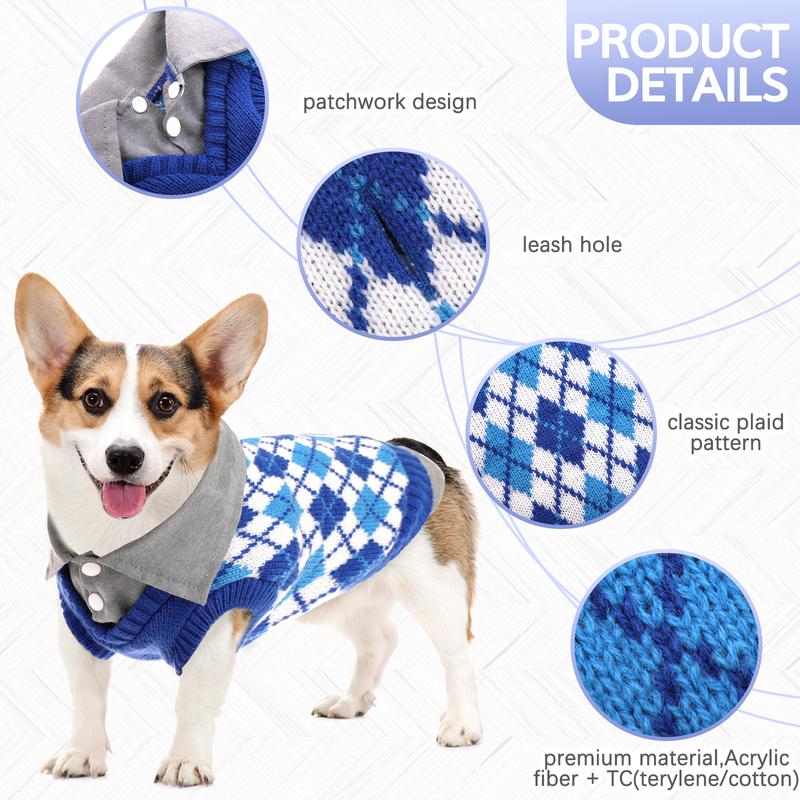 Premium Material: Our plaid sweater is made of Acrylic fiber + TC(terylene/cotton), very elastic, soft and comfortable. High quality material and the best comfortable fit can keep your dog warm in cold weather