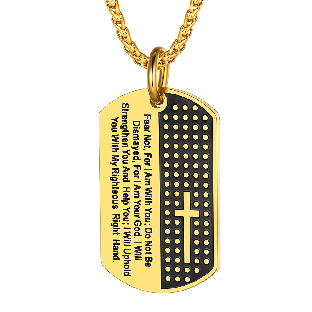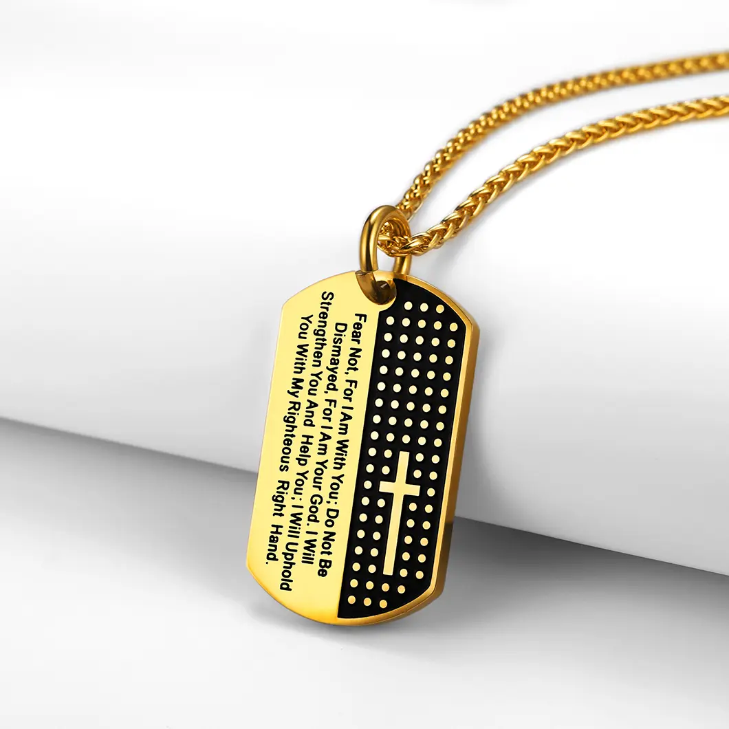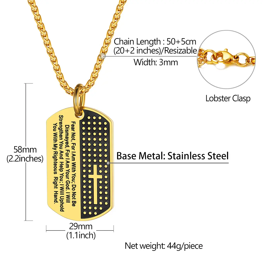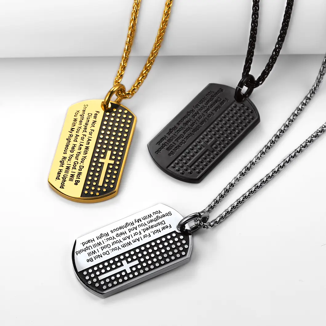 FindChic Military Cross Bible Verse Dog Tag Necklace Stainless Steel Catholic Christian Cross Pendant Necklace For Women MenFindChic Military Cross Bible Verse Dog Tag Necklace Stainless Steel Catholic Christian Cross Pendant Necklace For Women Men