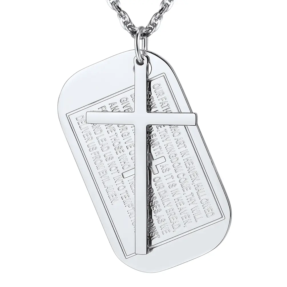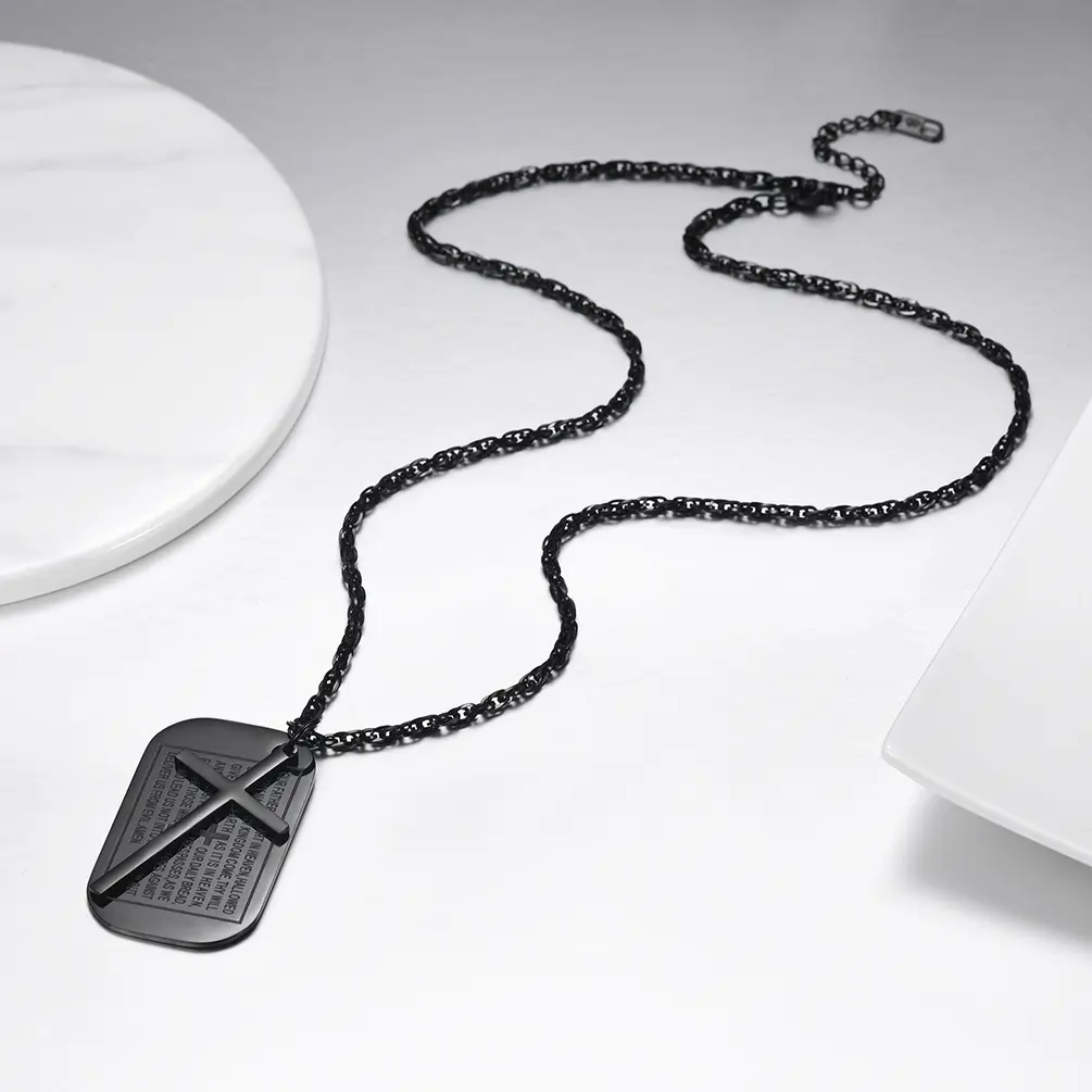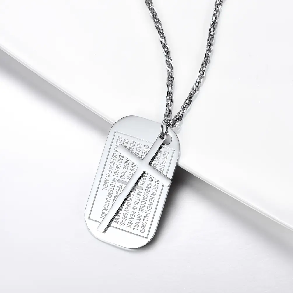 A faithful stainless steel dog tag pendant cross necklace for men women, perfect for daily outfit to show your faith and personality.