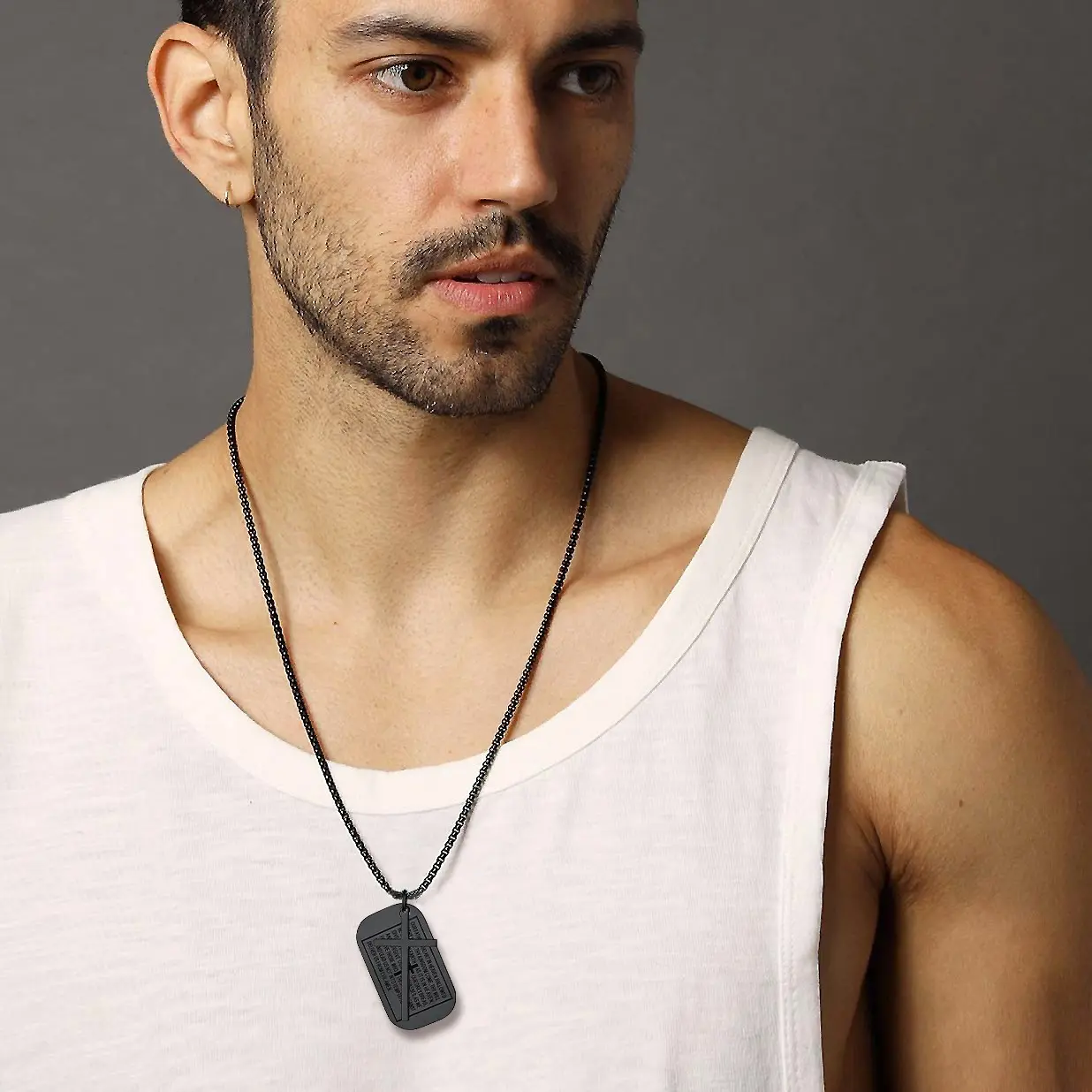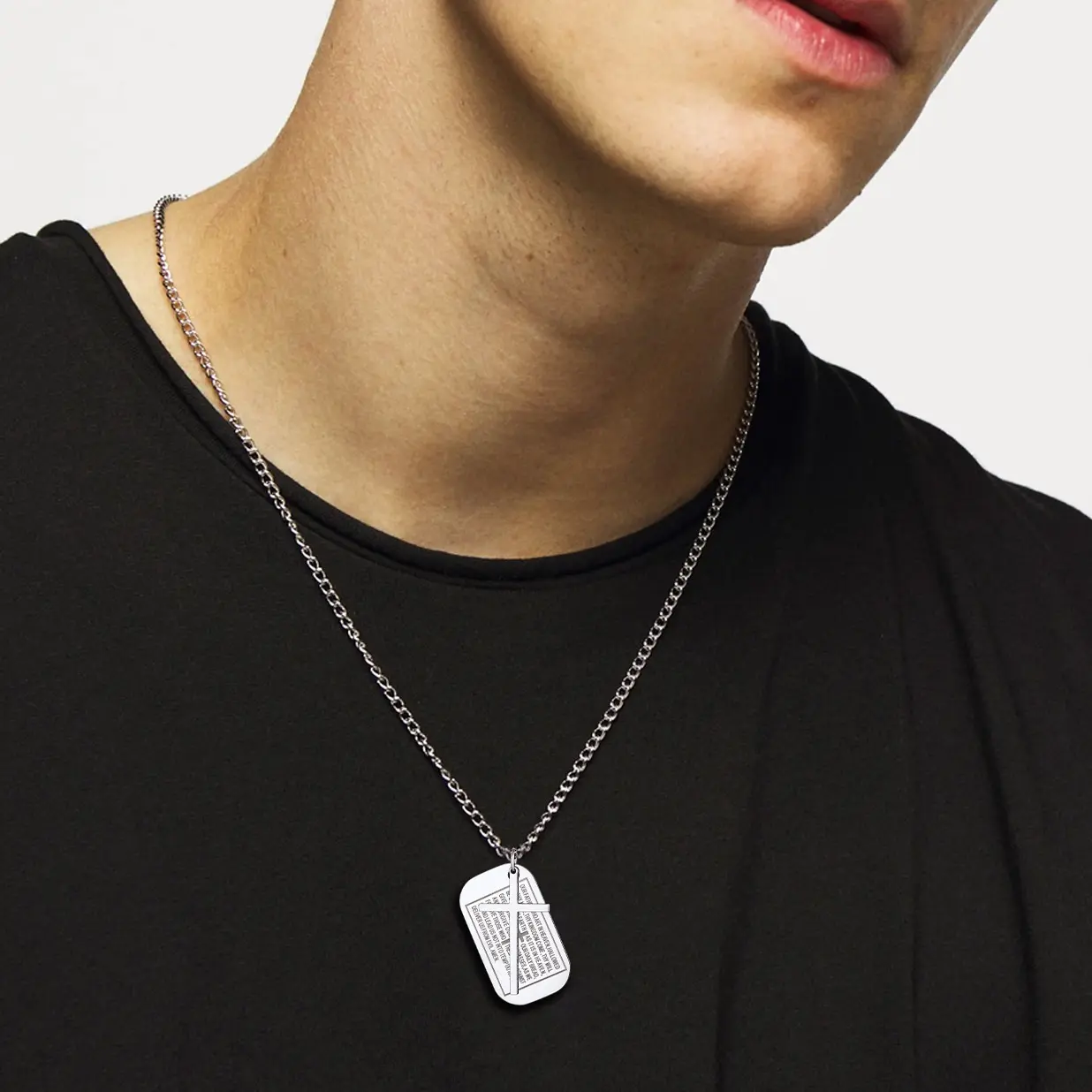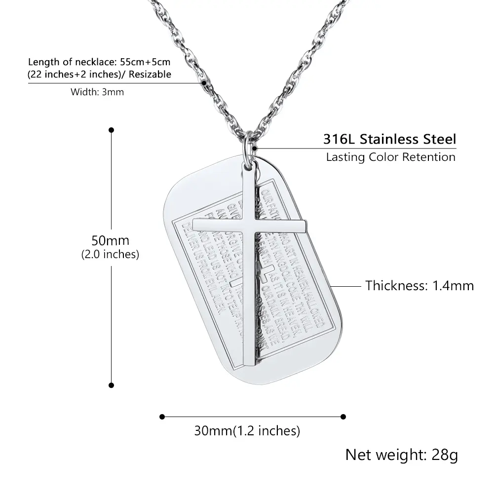 A faithful stainless steel dog tag pendant cross necklace for men women, perfect for daily outfit to show your faith and personality.