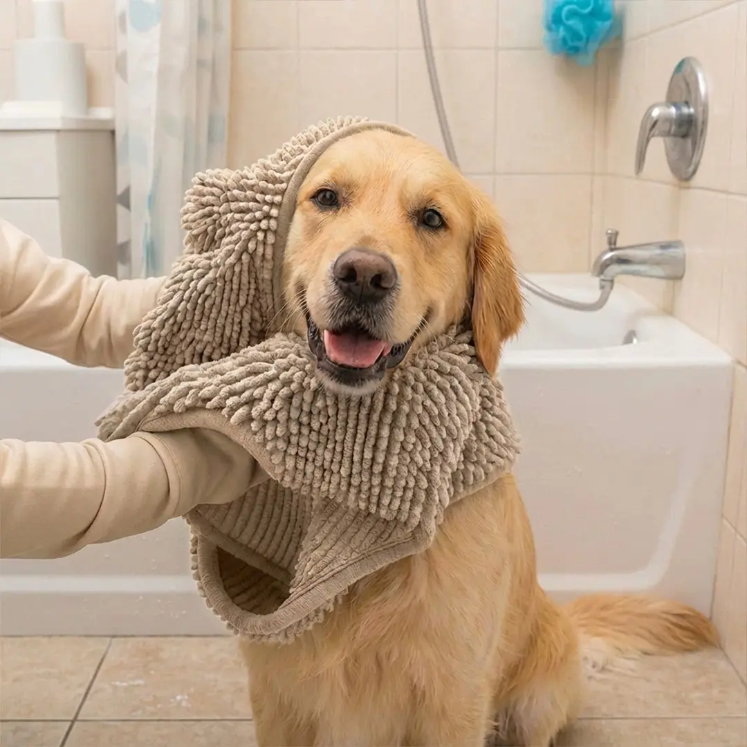 ·Ultra Absorbent Microfiber / Chenille Doggy Towel - Stop wrestling around with those dirty bath towels and use this super absorbent doggy dryer! Made from a blend of proprietary microfibers and chenille, it will absorb 8x more than its weight in water and traps loose hair like a comb, leaving no mess behind to clean up.