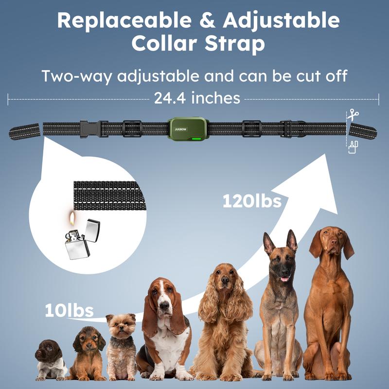 【Fits for 10-120lbs All Sizes of Dogs】Made of skin-friendly and comfortable soft nylon, two-way adjustable strap. This dog training collar with remote fits dogs over 10 lb with neck sizes 7.8-24.4 inches. Dog training collars are suitable for large dogs, medium dogs, and small dogs. The compact collar design ensures a comfortable fit for your furry friend.