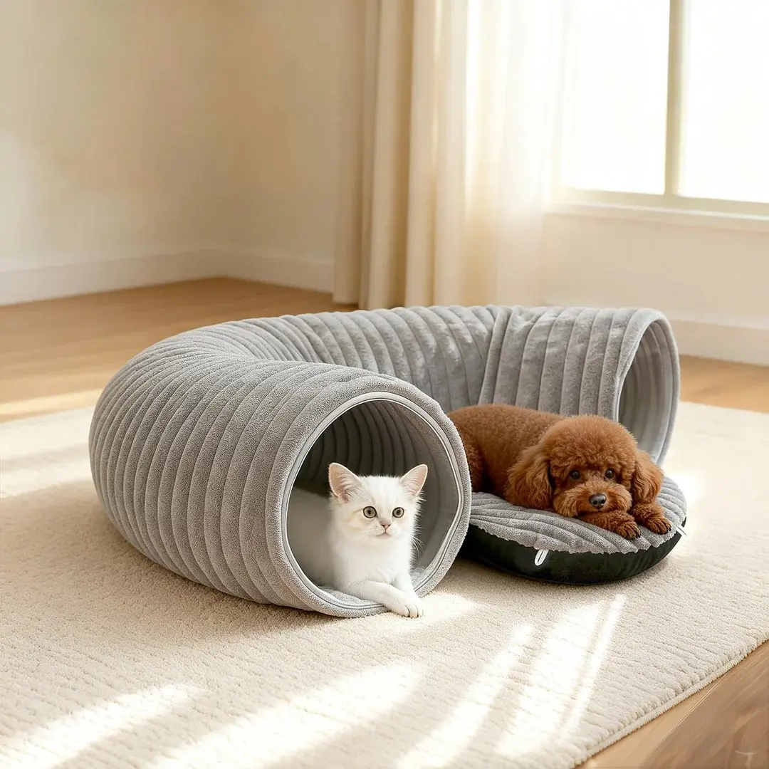 The foldable design of this pet tunnel bed allows for easy storage and space-saving, making it perfect for small apartments or homes.