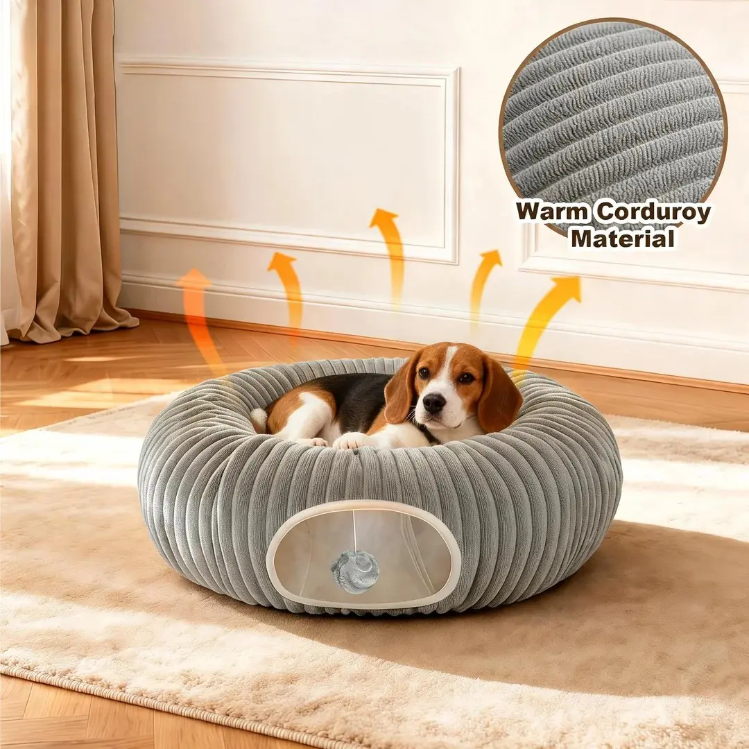 This soft pet donut tunnel is suitable cats and small dogs, providing a cozy space for all sizes of felines.
