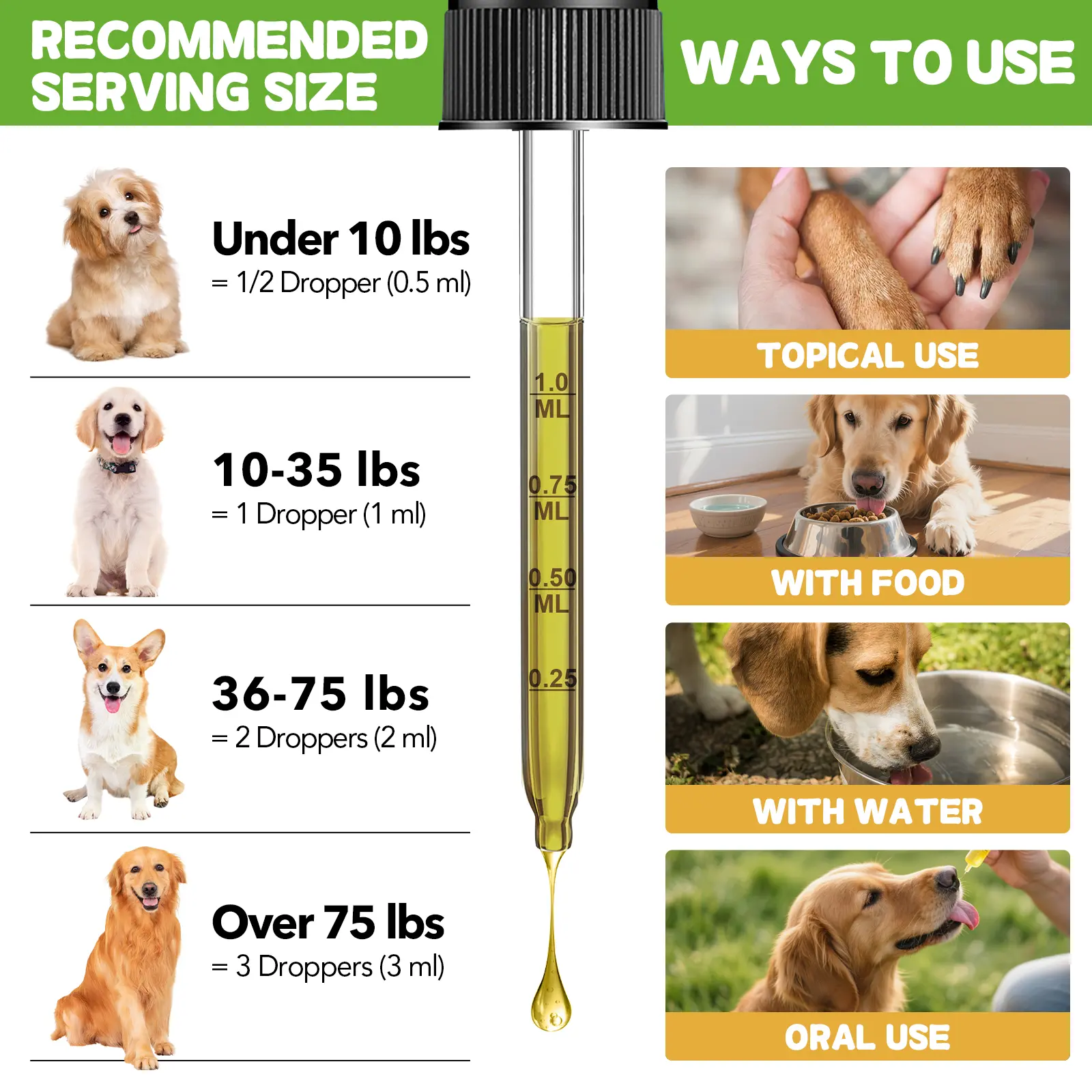 Comes with a precision dropper for easy, accurate dosing. Simply shake well before use, then add the drops to your pet’s water bowl, food, or administer directly into their mouth. The delicious bacon flavor makes this herbal supplement appealing to even picky cats and dogs.