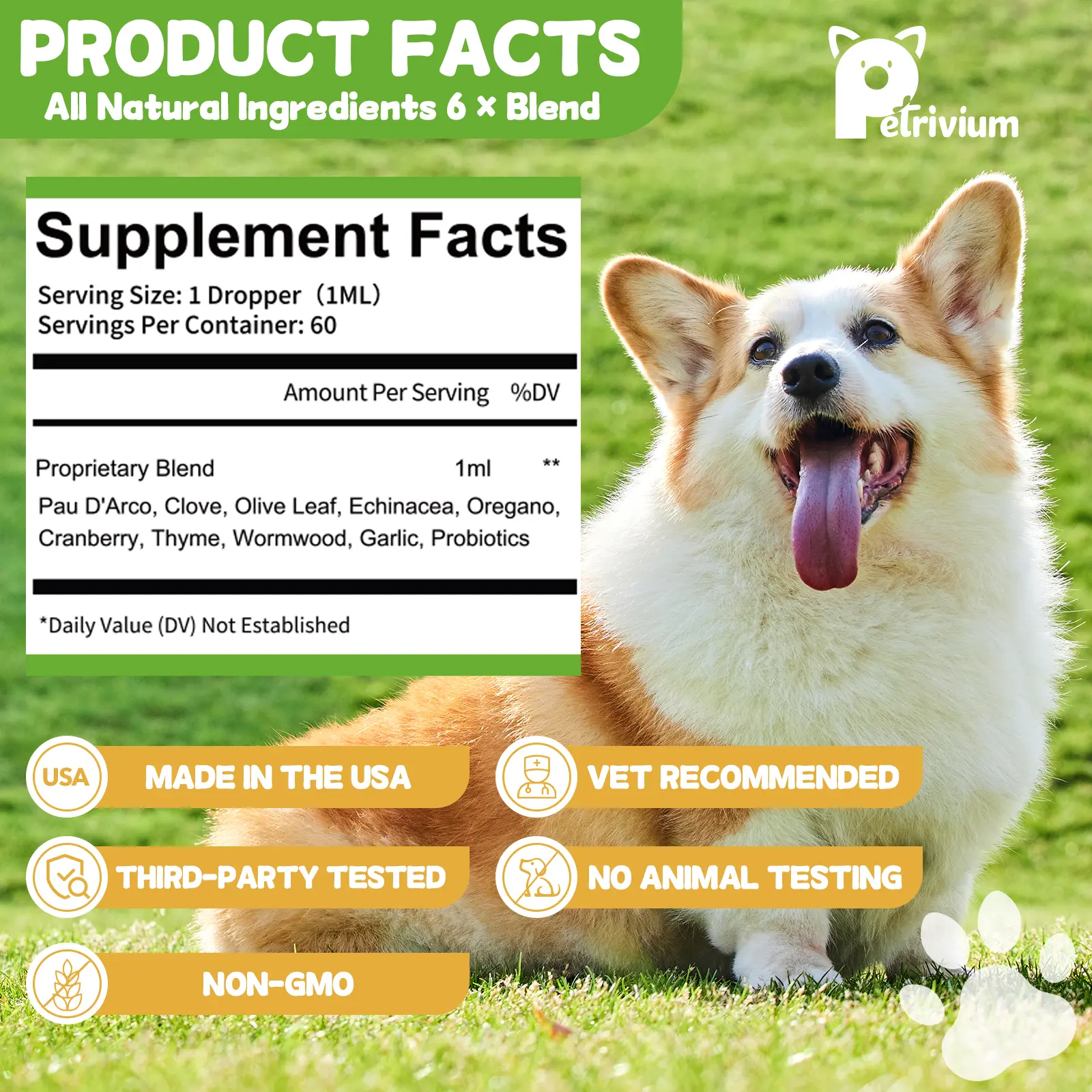Petrivium Natural Support Drops for Cats & Dogs